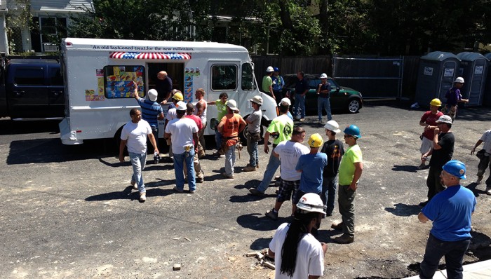 Kids go crazy for an Ice Cream truck...even big kids, with hard hats! Wyeth Construction Team c. 2014