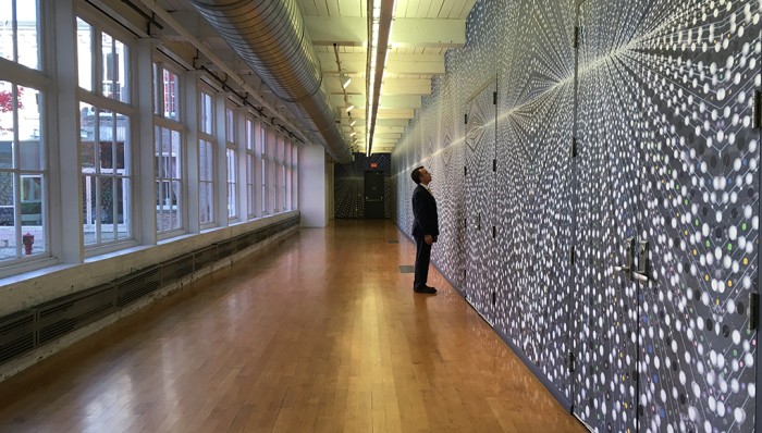 Stephen Bradley counting dots, MASS MoCA c. 2015